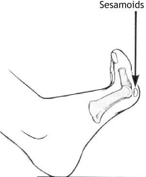 - You may have to wear a J-shaped pad around the area of the sesamoid to relieve pressure as the fracture heals.