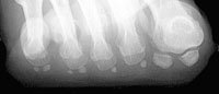 Most bones in the human body are connected to each other at joints. But there are a few bones that are not connected to any other bone. Instead, they are connected only to tendons or are embedded in muscle. These are the sesamoids. The kneecap (patella) is the largest sesamoid. Two other very small sesamoids (about the size of a kernel of corn) are found in the underside of the forefoot near the great toe, one on the outer side of the foot (lateral) and the other closer to the middle of the foot (Medial). these sesamoids are embedded in the flexor hallucis brevis tendon, one of several tendons that exert pressure from the big toe against the ground and help initiate the act of walking.It is not uncommon for people to have more then two sesamoids on the great toe as well. this condition is called Biparte sesamoids and can easily be misdiagnosed as a fracture of one of the medial or lateral sesamoids, when infact it is a third sesamoid in its own right. Because the edges of a bipartite medial sesamoid are generally smooth, and the edges of a fractured sesamoid are generally jagged, an X-ray is useful in making an appropriate diagnosis. Your physician may also request X-rays of the other foot to compare the bone structure.