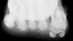 a view looking in from the anterior of the foot. note that this particular foot has sesamoids under each toe!