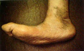 a collapsed arch; bones which abnormally protrude against the skin, possibly