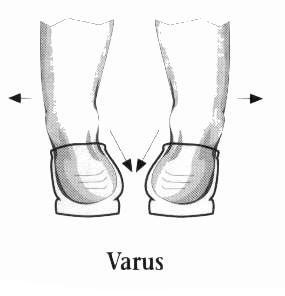 Varus - condition where heel turns in abnormally, the motion of the foot rolling in this position is known as supination or inversion
