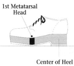 Two important measuring points for short limb build-ups are at the center of the heel and at the ball of the foot. The prescription should specify the leg length difference and the height of the elevation requested for the ball and the heel. Elevations need not be cumbersome or heavy. Liquid to rigid foam materials create an attractive, light elevation. |