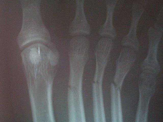 The 2nd or 3rd metatarsals are the most susceptible to this injury, which